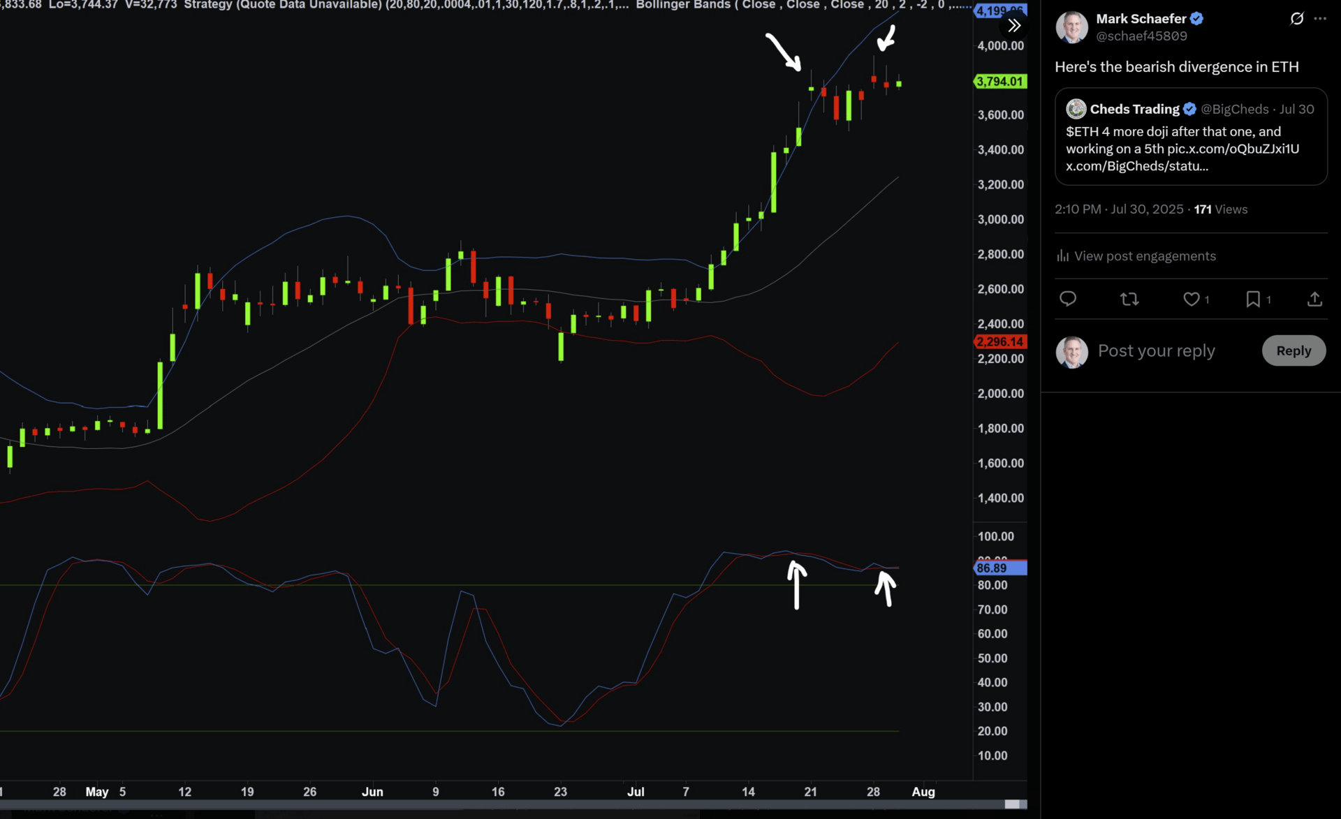 ETH Bearish Divergence: Daily divergence at 3,794 → 3,354 → +440 points