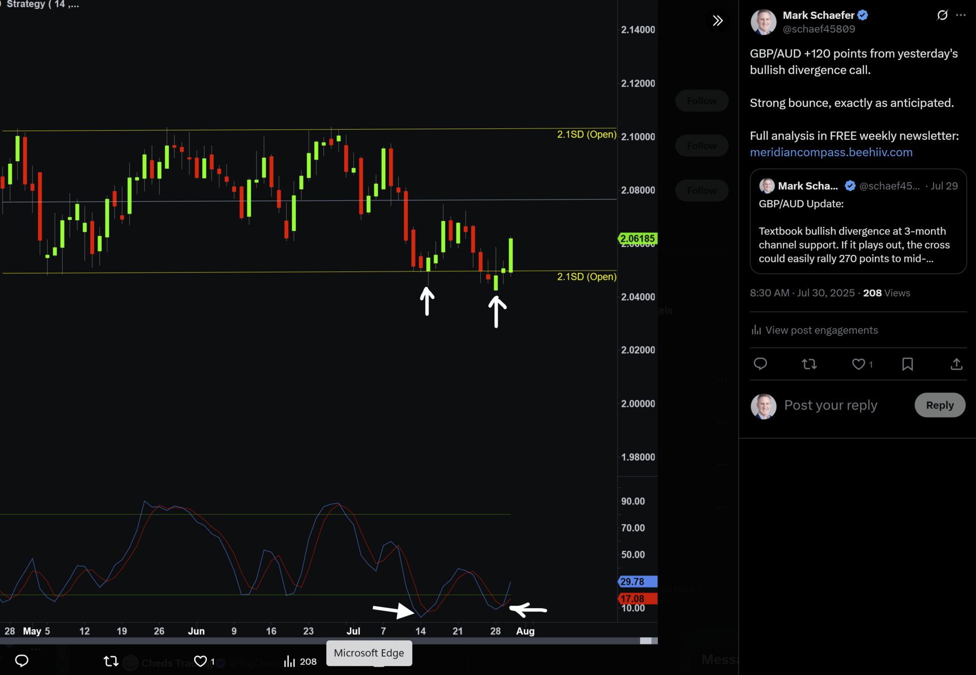 GBP/AUD Bullish Divergence: Channel support 2.0507 → 2.0626 in 24hrs → +119 points